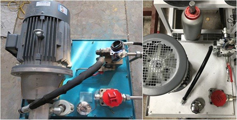 Unitate hidraulikoak potentzia hidraulikoa hornitzen du burua nahasteko, presio baxuko truke-balbula eta abar. 200L petrolio-depositu bat, AC motorra, ponpa hidraulikoa, presio kontrolatutako balbula blokeoa, bero-trukagailua, iragazkiak, metatzekoa, pantailaren presioa eta mahuka sistema.